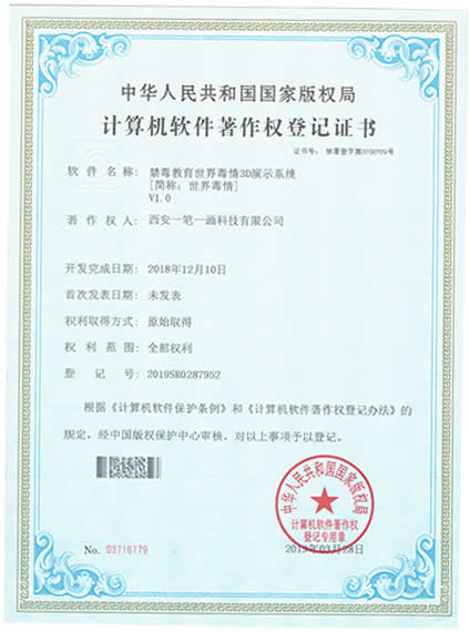 西安一筆一畫科技有限公司擁有《3C管理體系認證》|《3A信用等級》|《展館雙甲資質(zhì)》《招投標(biāo)證件》|《展覽業(yè)10大影響力品牌》|《環(huán)藝雙甲資質(zhì)》|《禁毒教育拒毒心理測試系統(tǒng)軟著》|《飛奪瀘定橋歷史重現(xiàn)虛擬體驗軟件軟著》|《禁毒教育世界毒情3D演示系統(tǒng)軟著》等等,是您可以信賴的展廳教育基地設(shè)計施工企業(yè)!